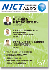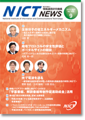 ●テラヘルツ天文学を拓く超伝導技術: 王 鎮/鵜澤 佳徳/牧瀬 圭正 ●光で電波を見る: 川西 哲也/木内 等 ●量子を使い光信号を遠隔地点に増幅・再生: 佐々木 雅英 ●Interop Tokyo 2013 出展報告 ●開催報告 第3回脳情報通信融合研究シンポジウム ●受賞者紹介 ●米国国立科学財団(NSF)とMOUを締結 |