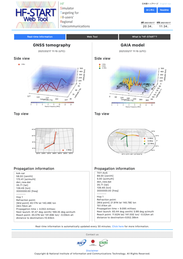 – Demonstrating radio wave propagation paths between any two points based on real-time space weather information –