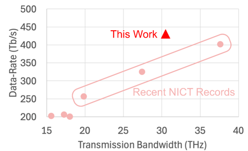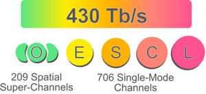 A new optical transmission record of 430 Tb/s, surpassing the previous record of 402 Tb/s.