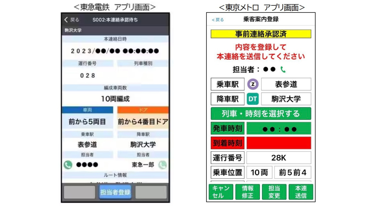 東急電鉄(左)と東京メトロ(右)のアプリの仕様は異なるが、必要な情報が連携できるようになっている