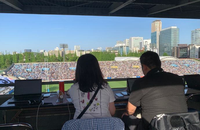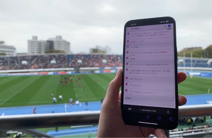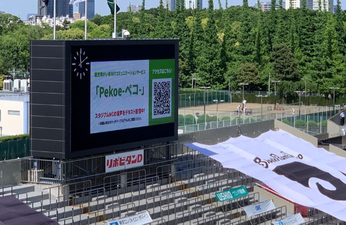スポーツイベントでの事例として、当社が運営するプロラグビーチーム「ブラックラムズ東京」のホーム試合では、二次元コードを掲載したチラシを配布し、来場者がスマートフォンで読み取ることで、アナウンスの内容をPekoeで確認できるようにしました。音声情報を同時に取得できる仕組みは、情報の公平性を確保し、誰もが安心して楽しめる環境づくりに大きく貢献しています。
