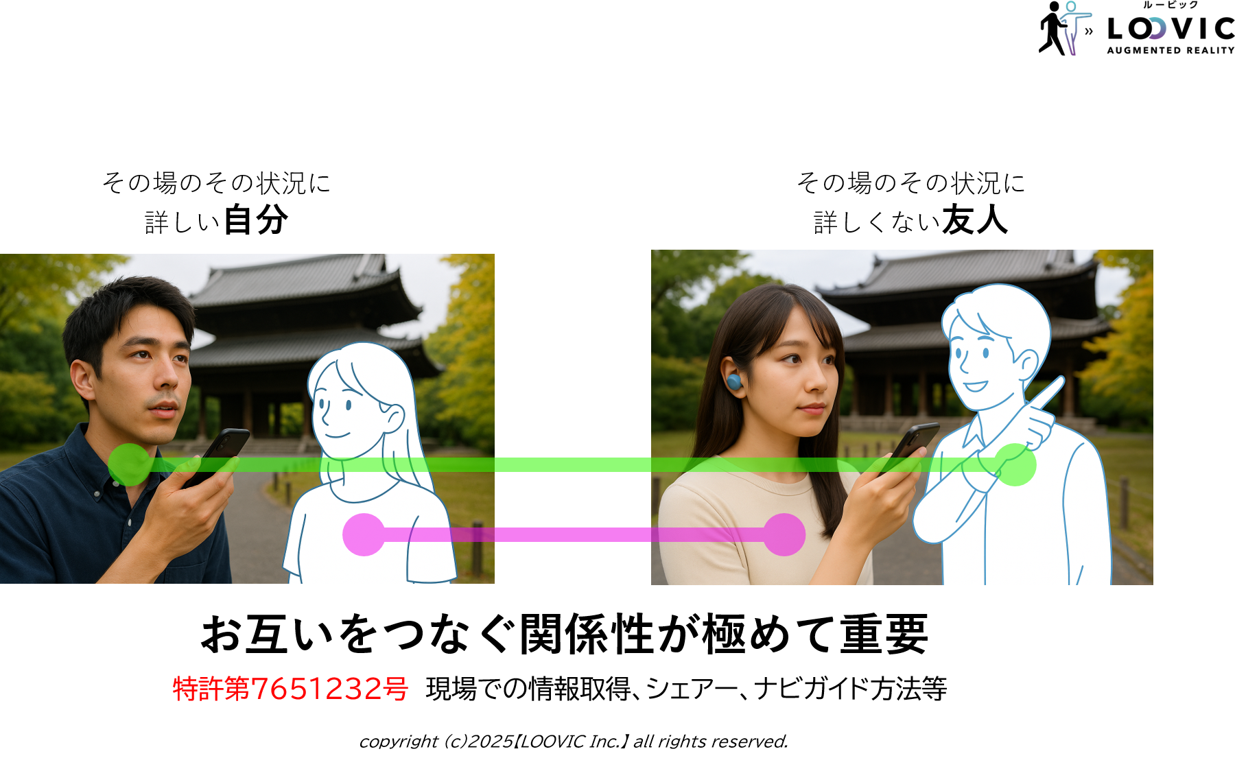 「LOOVIC」には、ナビゲーション(誘導)とガイド(案内)の機能が搭載されています。その地域や目的地の情報に詳しく、なおかつ利用する人の特性を理解している人が、アプリ上でナビや音声によるガイドを提供する「ナビガイド」という仕組みです。簡単にいうと、アプリ内のマップ上に”レール”を敷くイメージです。