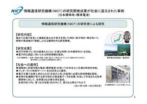 - 世界の各機関が有する原子時計の周波数データを収集・合成して作成される世界標準時に対して、世界第2位の寄与率を達成。