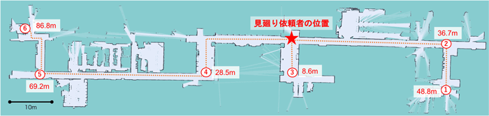 図1に、自律移動サービスロボットを用いた見廻りシステムの実証実験の流れ(一例)を示します。