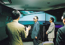 当日は、はじめに飯田所長が当所の概要を説明しました。その後、早足ではありましたが、次世代インターネット技術、非常時通信、手話対話支援システム、3−Dマルチメディア・バーチャルラボラトリ、超高速光通信技術、ミリ波映像伝送技術、3次元合成開口レーダ(SAR)、日本標準時、電磁環境計測等の各研究状況やデモンストレーションなどをご覧いただきました。