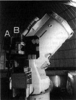(A:赤外カメラ,B:高感度CCDカメラ)
