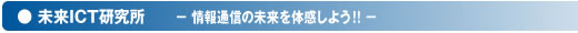 情報通信研究機構は、情報通信技術の研究開発を基礎から応用まで統合的な視点で推進することによって、豊かで安心・安全な社会の実現と、世界を先導する知的立国としてのわが国の発展に貢献する独立行政法人です。