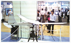 ●ネットワーク途絶に緊急出動!-小型無人航空機を利用したネットワーク孤立地域との中継技術-無線中継システムに使用する小型無人航空機と、搭載用無線中継機を展示し、孤立したネットワークを接続するシステムを紹介。
