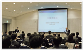 1月29日には、nano tech 2014のカンファレンス・セミナーとして、東京ビッグサイト会議棟において「新規材料とナノテクノロジーを融合した基礎研究成果のICT実用化技術への展開と社会実装」をテーマとした「ナノICTシンポジウム2014」を開催しました。はじめに基調講演として、東京工業大学教授の細野秀雄氏にイノベーション創出の原動力としての新規材料開発の重要性について、透明酸化物エレクトロニクスの展望をテーマにご講演いただきました。その後、酸化ガリウム、有機電気光学ポリマー、量子ドット光デバイスに関するNICTの研究開発とその実用化に向けた事例紹介として6件の講演が行われました。多数の方にご参加いただき、各講演に対して活発な質疑応答が行われました。
